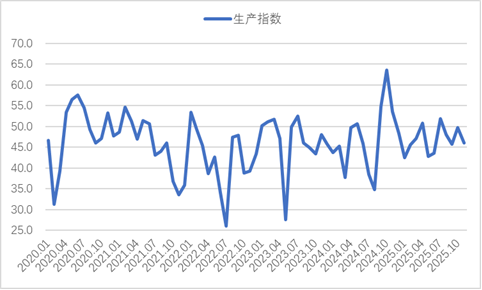 从中物联钢铁物流专业委员会调查、发布的钢铁行业 PMI 来看,2025年11月份为48%,环比下降1.2个百分点,行业运行有所放缓。分项指数变化显示,钢铁需求略有回暖,但钢厂生产有所放缓,产品库存有所消化,原材料价格高位运行,钢材价格小幅震荡,整体来看,行业淡季特征逐步显现。预计12月份,钢铁需求或稳中有降,钢厂生产温和收缩,原材料价格高位回落,钢材价格震荡趋稳。