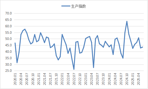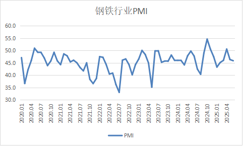 从中物联钢铁物流专业委员会调查、发布的钢铁行业?PMI?来看,2025年6月份为45.9%,环比下降0.5个百分点,连续2个月环比下降,显示钢铁行业继续承压运行。分项指数变化显示,钢铁需求偏弱运行,钢铁生产继续收紧,库存去化压力加大,钢材价格低位运行,原材料价格继续下行。预计7月份,受高温多雨天气影响,需求端进一步承压运行,钢材价格继续低位震荡,供给端也难有上升动力。