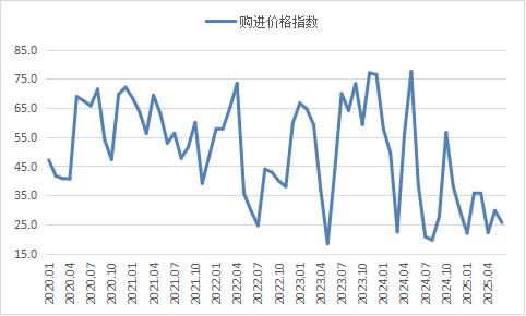 原材料价格低位运行。6月份,受钢厂生产收紧影响,钢厂采购活动仍相对谨慎,对原材料价格的支撑力度也有所偏弱。采购量指数为49.9%,环比虽小幅上升0.3个百分点,仍位于50%以下的收缩区间。购进价格指数进一步下滑4.1个百分点至25.6%,连续8个月位于低位,显示原料市场下行压力加剧。分品种显示,铁矿石因港口库存水平依旧较高,加上采购持续放缓,价格小幅震荡;焦炭月内第四轮提降落地,价格进一步走低;废钢则因电炉钢企亏损扩大,需求有所转弱,价格呈现震荡筑底特征。整体看,原材料市场在需求疲弱的影响下,价格呈现低位震荡态势,上升动力不足。