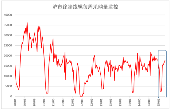 图3 2020年以来沪市终端线螺每周采购量监控数据变化情况