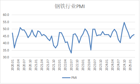 从中物联钢铁物流专业委员会调查、发布的钢铁行业 PMI 来看,2025年3月份为46%,环比上升0.9个百分点,连续2个月环比回升,但指数仍运行在收缩区间,显示钢铁行业恢复缓慢。分项指数变化显示,钢材需求缓慢恢复,终端采购较好回升,钢厂生产趋稳运行,但供大于求压力有所显现。原材料价格继续下行,钢材价格震荡走低。预计4月份,钢市需求将有所回暖,钢厂生产稳中有升,原材料和钢材价格将低位回升。