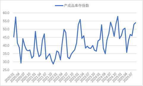 原材料价格继续高位运行,炼钢成本压力连续加大。9月份,由于钢厂生产活动有所放缓,钢厂原材料采购活动同步趋缓,采购量指数环比下降5个百分点至48.5%,结束连续2个月在扩张区间运行态势,并创下二季度以来新低。但炼钢原材料价格仍保持高位运行,购进价格指数连续3个月运行在60%以上的高位区间。分品种来看,铁矿石价格呈现冲高回落运行态势,上旬受"反内卷"消息及旺季预期提振,下旬终端需求不及预期导致价格波动下行,但整体较上月仍有上升;焦炭方面,供给端持续偏紧,价格继续维持在较高水平;废钢价格也有上升态势。整体来看,原材料价格继续高位运行,炼钢成本压力持续加大。