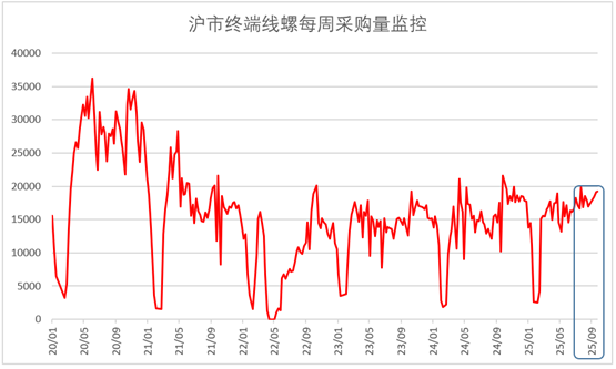 图3 2020年以来沪市终端线螺每周采购量监控数据变化情况